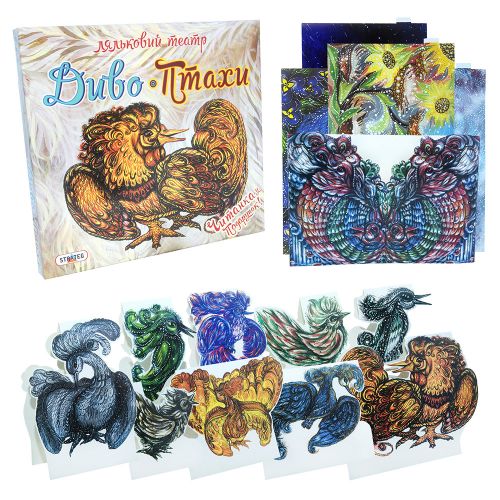 Кукольный театр будет интересным вариантом проведения досуга с ребёнком. Можно поставить представление. В наборе есть фигурки-персонажи птиц, сменные декорации, сборник со сказками и рассказами. Выполнен набор из картона. Для детей от от 6 лет.