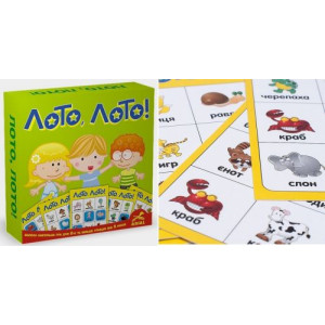 Настольная игра 'Лото, лото!'. Детская версия известной игры, где вместо цифр в ней интересные рисунки животных. Успей воскликнуть название фишки раньше соперников и получи ее. Игра знакомит детей с миром животных, развивает внимание и реакцию.