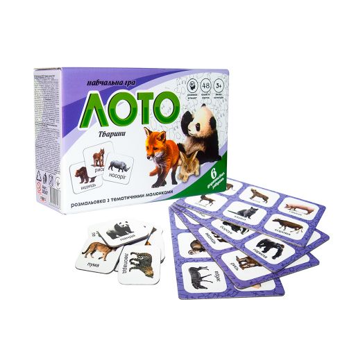 Игра по правилам классического лото с картинками, на которых изображены животные. Игра способствует развитию внимания, памяти, помогает изучить украинский алфавит. Рассчитана на 1-8 игроков от 3-х лет.