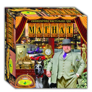 Экономическая игра 'Магнат' поможет интересно и содержательно провести время в семейном кругу или с друзьями. Находчивость и смекалка, умелое сочетание бережливости и разумного риска приведут Вас к победе и обязательно пригодятся в реальной жизни. Комплектация: Игровое поле, карточки собственности, карточки 'Офис, Шанс, Форс-мажор', карточки дома и отели, фишки, кубики.
