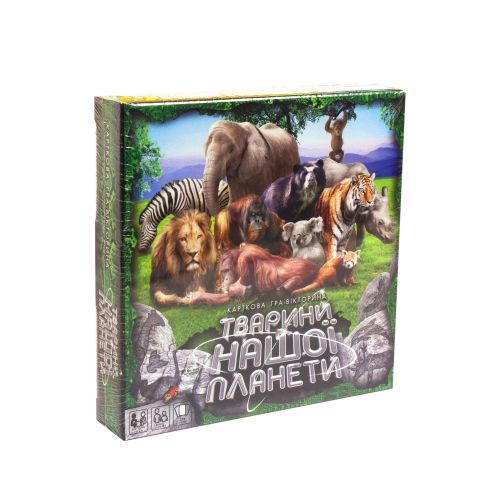 Карточная игра-викторина 'Животные нашей планеты'. Играя в эту игру, участники растворяясь в веселом азартные, получат бесценный багаж знаний в области зоологии и географии. Познакомьтесь с удивительными фактами и окунитесь в море нових знаний о животных, которые проживают на планете Земля. В наборе: игровые карточки (224 штуки), карта животного мира, картинка-пазл, правила игры.