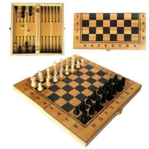 Игра 2 в 1 (шахматы и нарды) на деревянной доске. Набор состоит из игровой доски (23 х 2 х 23) для игры в нарды и шахматы.