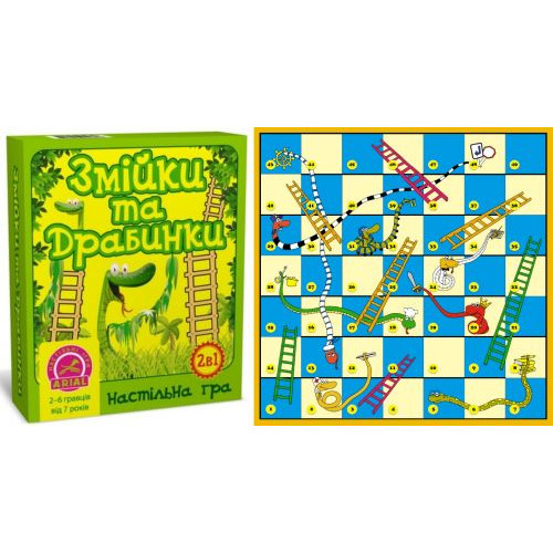 Настольная игра 'Змейки и лесенки'. Игра начинается с того, что участники выбирают себе фишки по цветам. Первый игрок бросает кубик. Сколько точечек выпало - на столько ходов он продвигается. Если упало на хвост змеи, то участник вынужден вернутся к началу, то есть на №1. Если попало на лесенку, то можно продвинуться на верх на 1 номер. Затем наступает очередь второго, и так по кругу. Выигрывает тот, кто первый дойдет до №49. Играть могут до 6 человек.