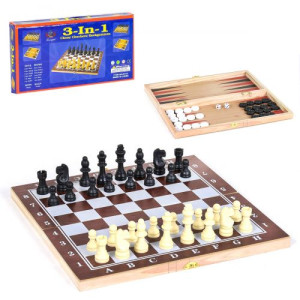 Игровой набор будет интересным подарком ребёнку. В наборе есть: шашки, шахматы и нарды. Размер игрового поля - 29 х 29 см. Игровая доска выполнена из дерева, игровые фигуры - пластик. Для детей от 3-х лет.