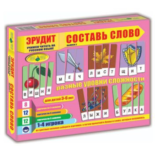 Игра 'Эрудит' будет интересным подарком ребёнку. Нужно из цветных карточек - соломок собирать слова. Для детей 3-6 лет.