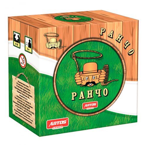 Игра 'Ранчо' в тубе. Цель игры: в зависимости от изображения на рубешке карточки (цифра или животное), игрокам необходимо как можно быстрее найти или посчитать нужное нам животное. Тот, у кого в конце игры будет больше собранных карточек, станет победителем. В комплекте: 70 карточек, 10 жетонов, правила игры.