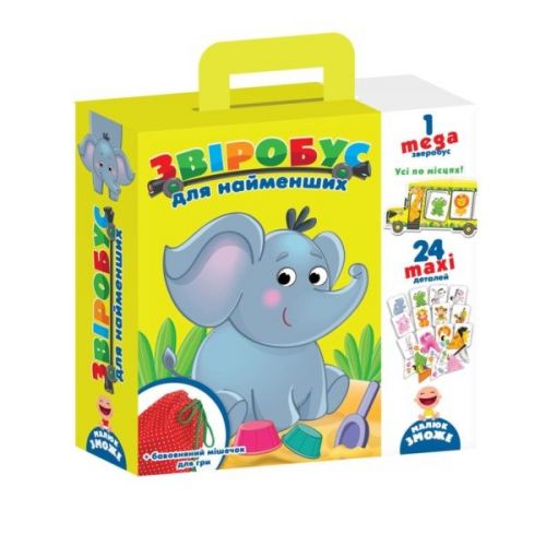 Игра с мешочком 'Зверобус' для самых маленьких. 24 maxi детали. Простые правила: доставай из мешочка фишку и размещай пассажиров зверобуса. Детали из прочного картона, толщина - 2 мм.