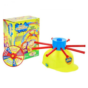 Игра 'Вечеринка мокроголовый'. Правила: по очереди надевается шлем на голову, а котором установлен резервуар с водой и заглушками, и крутить рулетку. Как только её стрелка остановится, необходимо выполнить одно из 5 указаний, среди которых: «Вытяни 1 стержень», «Вытяни 2 стрежня», «Вытяни 1 стержень и крути еще раз», «Крути еще раз» и «Пропусти ход». Победит тот кто останется сухим.