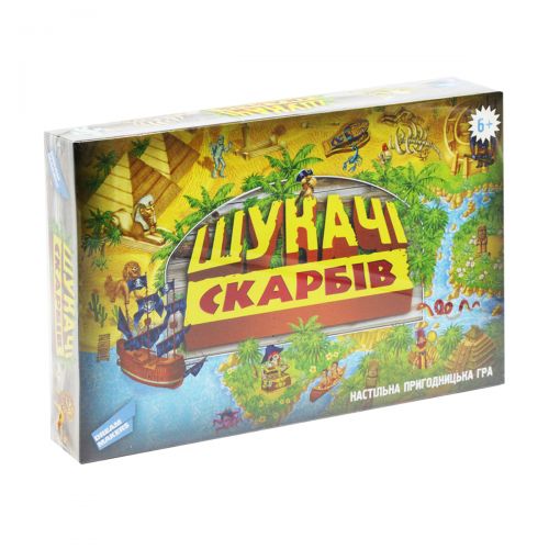 'Искатели сокровищ' - сборник мини-игр, объединенных одной общей темой. В ходе игры игроки посетят: джунгли, острова, пустыню, горы и леса. На каждой местности нужно найти клад. Для 2-4 игроков от 6 лет.