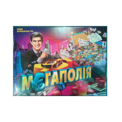 Настольная игра 'Мегаполия'. Выполненная по типу всем известной «Монополии» эта экономическая игра позволят малышу побывать политиком, лидером коммунистической или капиталистической партии и попробовать изменить игровую экономику путем политического переворота и смены власти. В наборе: игровое поле, 3 модельки, 3 шашки-подставки, 2 кубика, 10 карточек города, 160 фишек собственности, 140 денежных банкнот, 40 карточек филиалов, 4 фишки игроков, инструкция .
