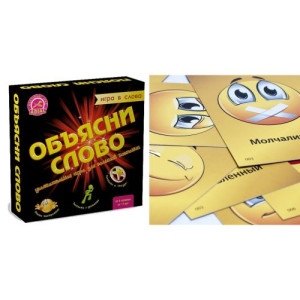 Настольная игра 'Объясни слово'. Задача игры - объяснит слово, не используя однокоренные. В комплекте игры более полутора сотен карточек, на каждой из которых по 10 слов. Возможны варианты игры с игровым полем и без него.