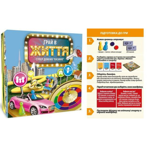Настольная игра 'Супер доміно казино: грай в життя' предназначена для 2-4 игроков и занимает по времени примерно 30-90 минут. 'Играй в жизнь' - это игра приключение, где Вы самостоятельно строите свою судьбу: чему-то научиться, или создать семью, или же рисковать своими сбережениями ради мечты. Самый богатый игрок - станет победителем. Комплектация: игровое поле, рулетка, комплект игровых карточек, 4 игровые фишки, 4 жетона, комплект игровых денег и правила игры. Язык: украинский.