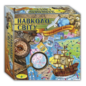 Настольная игра 'Вокруг света'. В стиле географического квеста. Игра позволит побывать в самых отдаленных уголках планеты, узнать много нового о странах и городах, посетить известные достопримечательности и окунутся в культуру других народов. Комплектация: игровое поле (48х68 см.), 120 карточек с вопросами по материкам, 60 карточек с общими вопросами, 36 призовых карточек, 8 фишек, кубик, правила игры.