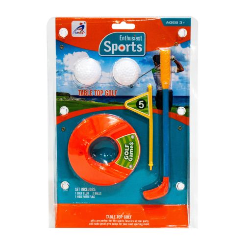 Набор для игры в настольный мини-гольф. В комплекте: маленькая клюшка (20,5 х 3,5 см), лунка с флажком и 2 шара, диаметром 3,5 см.