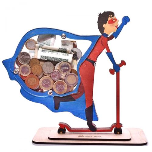 С помощью набора можно собрать оригинальную копилочку для монет, в виде супермена. Прозрачная крышка с двух сторон в копилке позволяет не только видеть ваши накопления, но и иметь лёгкий и быстрый доступ к ним. Собирать 3D пазл самостоятельно - легко и приятно. Это не требует специальных навыков и инструментов: в каждом наборе вы найдете все необходимое для сборки. 3D пазл повторяет принцип современной технологии 3D печати. Все фигуры состоят из слоев высококачественного картона. Слои называются слайсамы. Как собирать: разложите слайсы по десяткам; склеивайте слои между собой в порядке возрастания. Для предотвращения смещения слайсов используйте направляющие. Составленный пазл можно раскрасить, и использовать как оригинальный декор. Для детей от 4 лет. Краски в набор не входят.