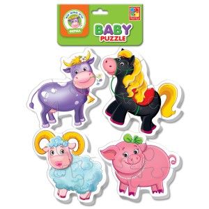 Пазл Vladi Toys Ферма VT1106-51Беби пазл 'Ферма'. В наборе 4 пазла (свинка, корова, лошадка, овечка) по 3-5 крупных деталей.