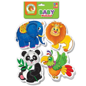 Пазл Vladi Toys Зоопарк VT1106-50Беби пазл 'Зоопарк'. В наборе 4 пазла (слон, лев, панда попугай) по 4-5 крупных деталей.