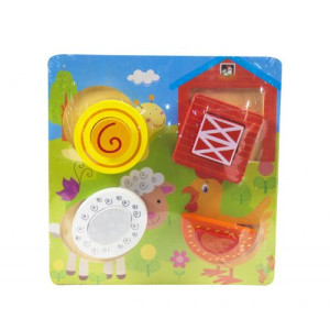 Игра состоит из деревянного планшета и красочных фигурок с ручками. Задача ребенка: подбирать подходящие по размеру и форме детали и вставлять в специально отведенные для них места. Способствует развитию мелкой моторики, изучению цветов, форм и размеров.