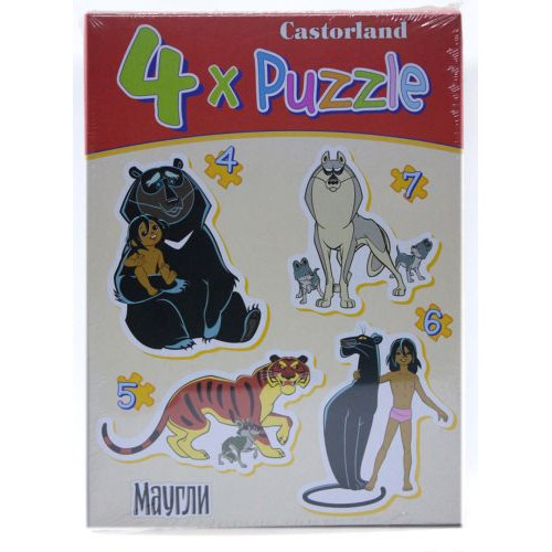Красочные пазлы 4 в 1 'Маугли' на 4, 5, 6 и 7 элементов. Размер готовой картинки: 23 x 16,5 см.