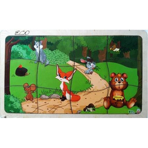 Бэби Пазл деревянный с рамкой Jumbi Лесные жители 12 элементов хороший вариант пазлов для малышей.
