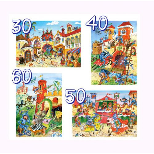 Пазлы 4 в 1 'Рыцари'. 4 пазла на 30, 40, 50 и 60 элементов. Развивают логическое мышление, мелкую моторику рук, усидчивость.