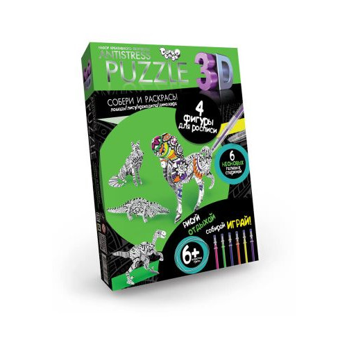 Пазлы-антистресс 3D "Животные". Собирай по схемам и раскрашивай как пожелаешь. 4 фигурки: лошадь, лиса, крокодил, динозавр. Рисуй и отдыхай, собирай и играй!