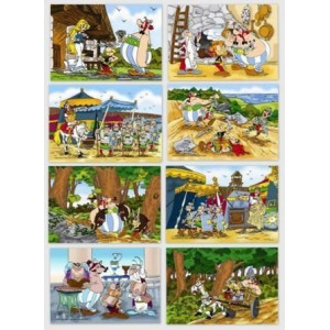 Набор ярких красочных пазлов. Состоит из 32-х упаковок пазлов с изображениями персонажей м/ф 'Астерикс и Обеликс'. В каждой упаковке - 54 детали. Размер 1-й штуки: 9 х 6,5 см. Развивают логическое мышление, мелкую моторику рук, усидчивость.