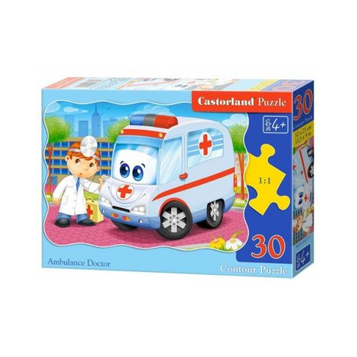 Красочные пазлы 'Машина скорой помощи' на 30 элементов. Размер готовой картинки: 32 х 23 см.