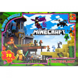 Яркие пазлы 'Майнкрафт' на 70 деталей. Размер картинки: 30 х 21 см. Развивают логическое мышление, мелкую моторику рук, усидчивость. Постер в подарок.