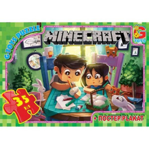 Яркие пазлы 'Майнкрафт' на 35 деталей с изображением героев мультфильма. Размер картинки: 30 х 21 см. Постер в подарок.