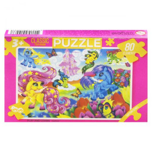 Яркие красочные пазлы на 80 элементов. Размер готовой картинки: 23х16,5 см. Развивают логическое мышление, мелкую моторику рук, усидчивость.