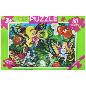 Яркие красочные пазлы на 80 элементов, с изображением сказочных персонажей. Размер готовой картинки: 23 х 16,5 см.