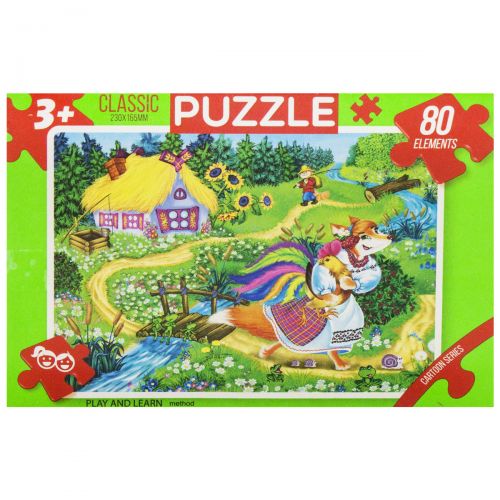 Яркие красочные пазлы на 80 элементов, с изображением сказочных персонажей. Размер готовой картинки: 23 х 16,5 см.
