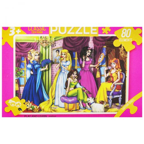 Яркие красочные пазлы на 80 элементов, с изображением сказочных персонажей. Размер готовой картинки: 23 х 16,5 см.