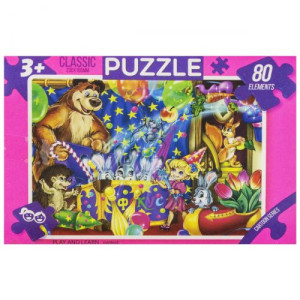 Яркие красочные пазлы на 80 элементов, с изображением сказочных персонажей. Размер готовой картинки: 23 х 16,5 см.