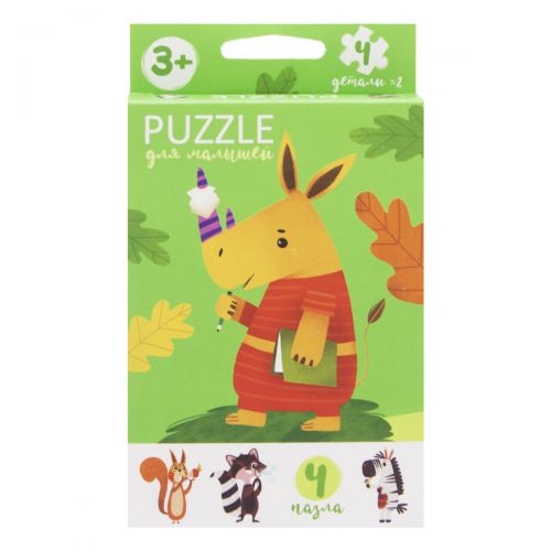 Яркие детские пазлы. Имеют большие детали, благодаря чему ребенку будет удобно собирать картинку. В наборе 4 пазла-картинки (каждый пазл состоит из 2-х деталей).