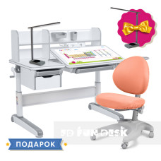 Детский комплект стол-трансформер FunDesk Libro Grey + эргономичное кресло FunDesk Cielo Orange ..