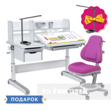 Комплект для девочки парта-трансформер FunDesk Trovare Grey + подростковое кресло FunDesk Bravo Purp..