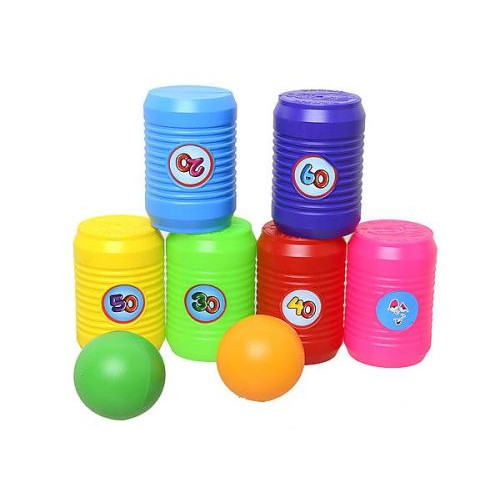 В наборе: 6 пластиковых бочонков для боулинга, 2 шарика в сетке. Высота бочонков: 10 см. Диаметр: 6 см. Все кегли в наборе пронумерованы, их можно расставить в математическом или в произвольном порядке. Выиграет тот, кто за наименьшее количество раз собьет больше очков. Сбитые за один удар кегли суммируются.