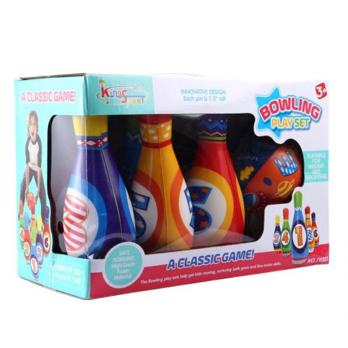 Игровой набор 'Боулинг'. Фомовый набор состоит из: 6 кеглей и мячика в яркой расцветке. Диаметр мячика - 10 см. Выстота кегли - 19 см.