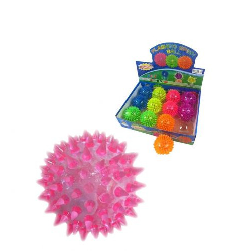 Мячик-прыгун, с шипами. Диаметр - 6,5 см. Со световыми эффектами. Разные цвета в ассортименте. Цена за 1 штуку.