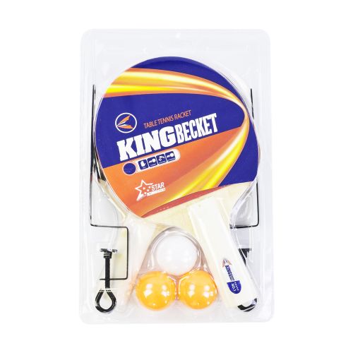 Набор для настольного тенниса. В комплекте: 2 ракетки (25 х 1 х 15 см), 3 шарика (4 см), сетка и металлические прочные крепления для сетки. Бьющая поверхность ракетки прорезинена, а основа изготовлена из дерева.