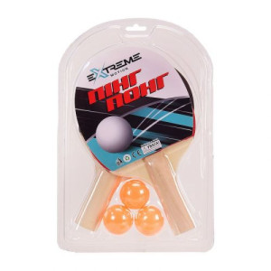 Набор для игры в настольный теннис. В комплекте есть: 2 деревянные ракетки, 3 мячика. Размер ракетки - 24х15 см., диаметр мячика - 4 см. Выполнено из качественных и безопасных материалов.