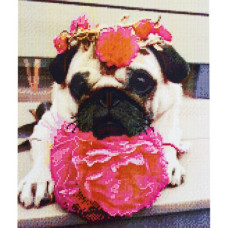 Алмазная мозаика Мопс с цветами В наличии:0шт.Артикулt165538