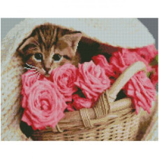 Алмазная мозаика Котёнок в розах В наличии:0шт.Артикулt172158