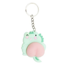 Милый резиновый брелок в виде зверушка с мягшкой объемной попой. Прикреплен к цепочке с металлически..