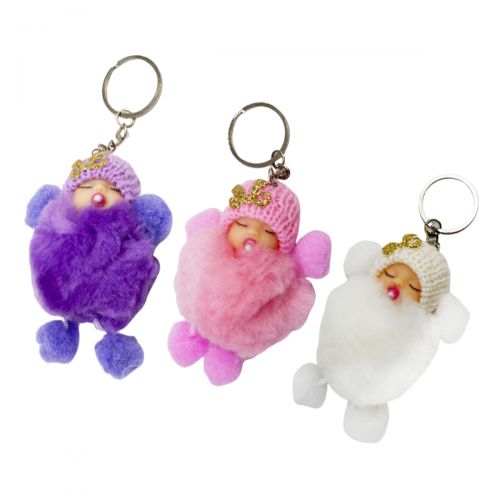 Симпатичный оригинальный брелок в виде пупсика в пушистой шубке и вязанной шапочке. Брелок очень милый и приятный на ощупь. 3 цвета в ассортименте: фиолетовый, розовый и белый. В пакете 12 штук.