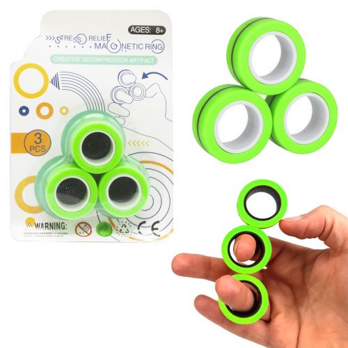Игра-антистресс 'Магнитные кольца'. Представляет собой набор из 3-х магнитных колец. Кольца можно вращать как спиннер, а так же,выполнять с ними разные трюки. Диаметр одного кольца - 3 см. Для детей от 8 лет. Цена за 1 шт.