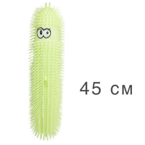 Игрушка антистресс 'Лупоглазая гусеница'. Яркая оригинальная игрушка в виде'мохнатой' гусеницы с огромными глазами, тело которой покрыто резиновыми 'лапками-ворсинками'. Её можно сжимать, мять и растягивать. Имеет резиновую петельку и разноцветную подсветку. Размер игрушки 45х10х10 см.