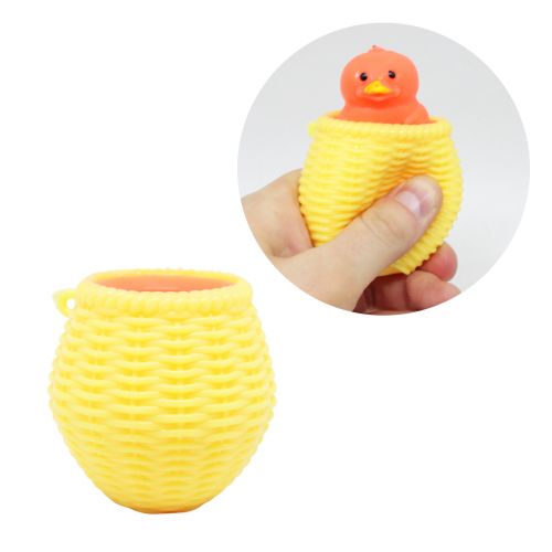 Антистресс 'Курочка'. Представляет собой забавную игрушку в виде корзины. Если корзину сжать - из нее 'вынырнет' голова курочки. Размер игрушки - 6х6 см. Выполнено из качественных и безопасных материалов.
